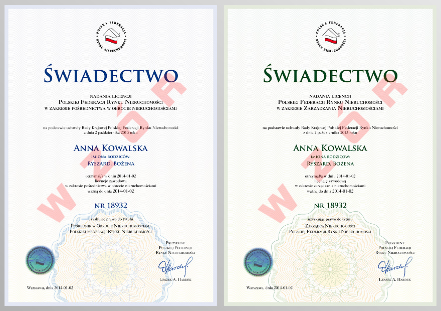 Tytuły zawodów są zastrzeżone przez Polską Federację Rynku Nieruchomości w Urzędzie Patentowym.